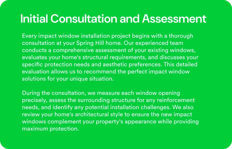 As Spring Hill's local impact window installation specialists, we understand the specific requirements and challenges of installing impact windows in Central Florida. Our knowledge of local building codes, permit requirements, and inspection processes ensures your installation meets all necessary standards.